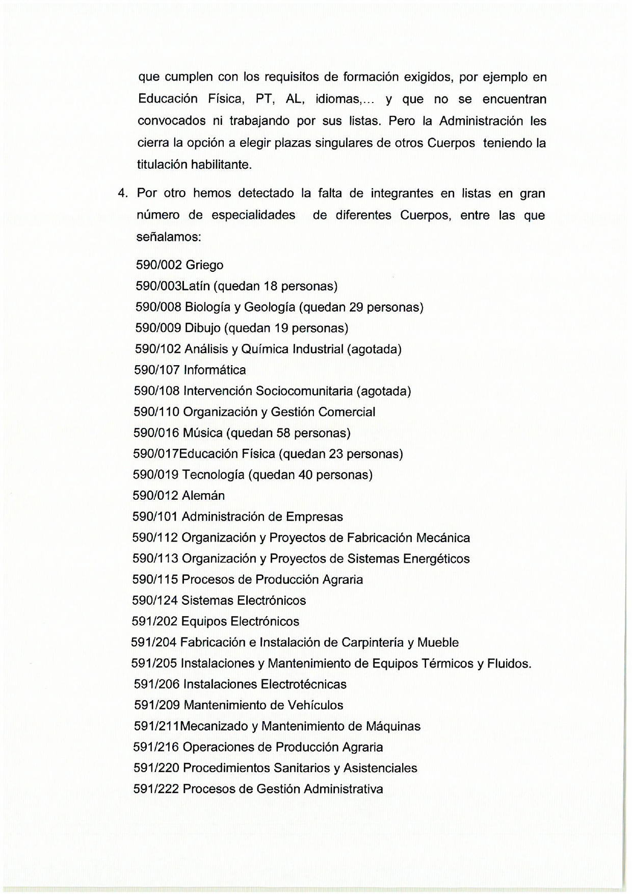 - Inclusión de aspirantes del cuerpo de maestros/as en la oferta de vacantes singulares de enseñanzas medias cuando cumplan los requisitos de titulación.