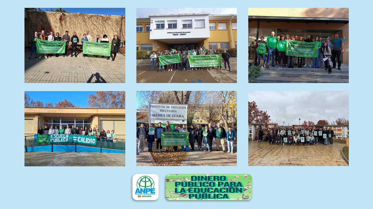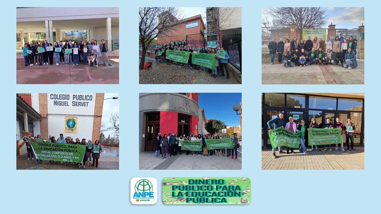 Bajo el lema «¡Dinero público para la educación pública!», ANPE Aragón promueve, se suma y apoya estas movilizaciones en defensa de un sistema educativo equitativo, con recursos suficientes y libre de recortes encubiertos. ¡Confrontemos más unidos que nunca esta lamentable INVERSIÓN DE LAS PRIORIDADES del Departamento de Educación!: ¡DINERO PÚBLICO PARA LA EDUCACIÓN PÚBLICA!