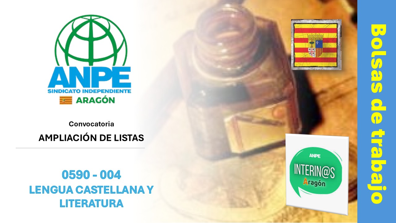 El Departamento de Educación de Aragón ha convocado procedimiento de ampliación de listas de espera para la especialidad de LENGUA CASTELLANA Y LITERATURA (0590-004) del Cuerpo de Profesores de Enseñanza Secundaria, ante la falta de personal candidato suficiente. El plazo de inscripción estará abierto del 17 al 25 de febrero de 2026 (ambos inclusive) y el acto de presentación tendrá lugar el 27 de febrero en Zaragoza, a las 15:30 horas en el Departamento de Educación, Cultura y Deporte, Avenida Ranillas 5 D, planta calle. El mismo tiene carácter personalísimo, por lo que no se admitirán acreditaciones ni poderes de representación. La convocatoria se rige por el Decreto 31/2016.