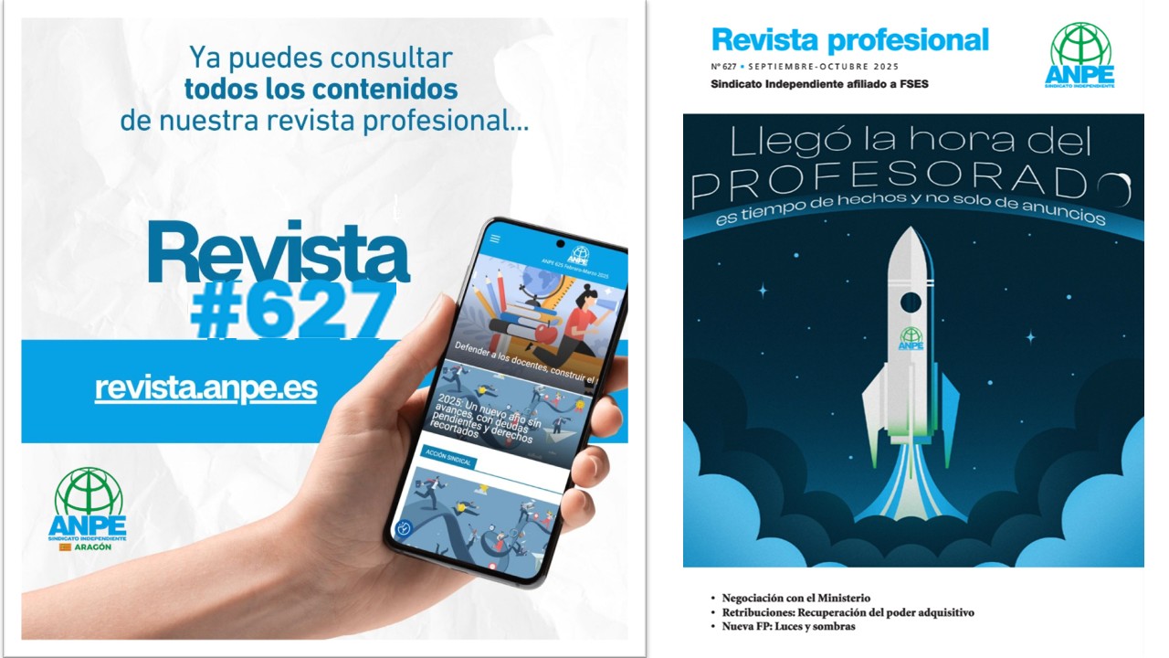 ANPE arranca el curso 2025-2026 reclamando un cambio real en la educación: avanzar en el diseño del futuro perfil docente, garantizar la equidad territorial en todo el Estado, reforzar plantillas y reducir ratios. El sindicato exige estabilidad normativa, bienestar emocional y una financiación que alcance el 5% del PIB. En otras palabras, desde ANPE pedimos asegurar una educación pública digna, equitativa y de calidad para tod@s. Ya disponible, en su integridad, el número 627 de la Revista Profesional ANPE, referencia ineludible en nuestro ámbito profesional: