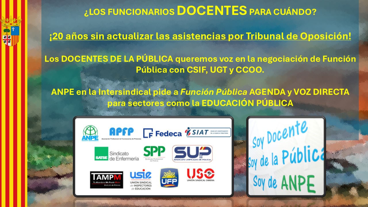 - Dejar otra vez de lado a los sectores estratégicos del empleo público resta legitimidad social y representatividad y genera un profundo malestar entre las plantillas. La voz de los cuerpos de funcionarios docentes debe estar presente en cualquier negociación salarial que afecte a los servicios públicos fundamentales. La ausencia de los sindicatos con mayor representatividad, como ANPE en la enseñanza pública, distorsiona la negociación e impide que se aborden las cuestiones clave para los docentes: revisión del complemento específico, actualización de indemnizaciones, carrera profesional y compensación real del IPC.