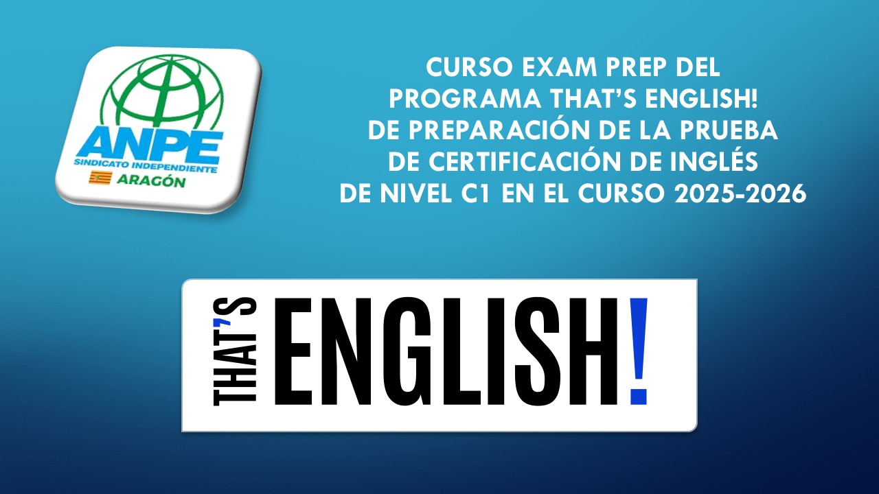 25/11/2025.- Educación publica las instrucciones del curso Exam Prep 2025-2026 del programa That’s English!, orientado a preparar la certificación de inglés nivel C1 en Aragón. El curso, íntegramente online, se desarrollará del 15 de enero al 15 de mayo de 2026, con inscripción abierta del 27 de noviembre de 2025 al 14 de enero de 2026. La EOI nº 1 de Zaragoza lo ofertará de forma experimental, incluyendo tareas escritas, tutorías por videoconferencia y acceso a la prueba de certificación.
