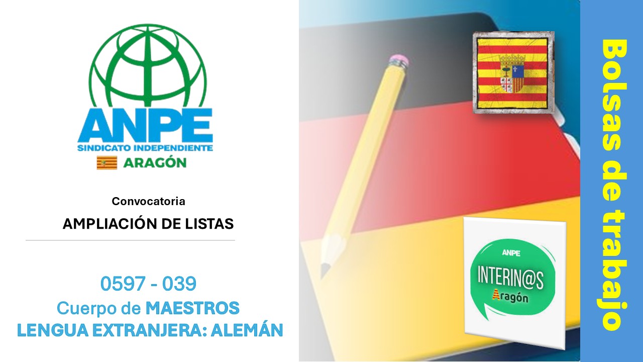 ARAGÓN: Ampliación de listas.- MAESTR@S - LENGUA EXTRANJERA: ALEMÁN - Convocatoria. Solicitudes hasta el 23 de febrero.