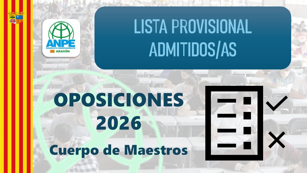 13/03/2026.- El Boletín Oficial de Aragón publica la resolución que aprueba las LISTAS PROVISIONALES DE PERSONAS ADMITIDAS Y EXCLUIDAS EN EL PROCEDIMIENTO SELECTIVO de ingreso y acceso al Cuerpo de Maestros convocado por Orden ECD/1886/2025.