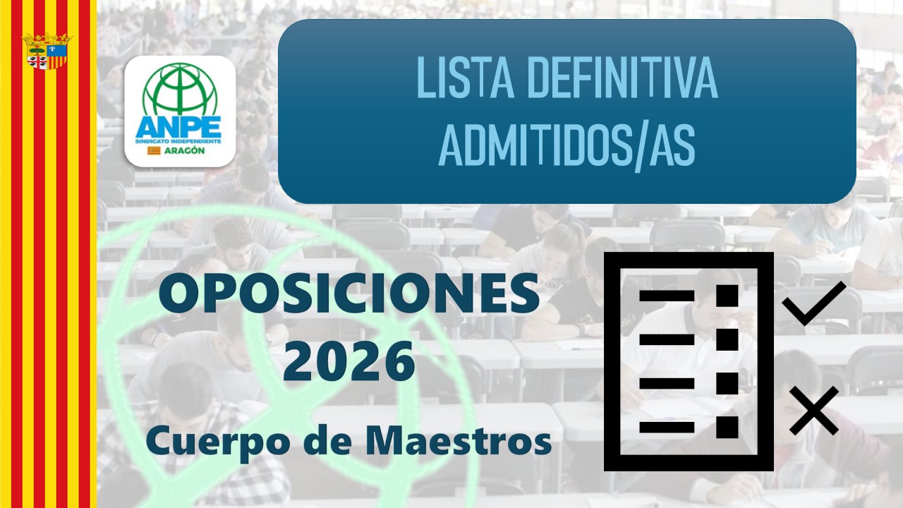20/04/2026.- El Boletín Oficial de Aragón publica la resolución que aprueba las LISTAS DEFINITIVAS DE PERSONAS ADMITIDAS Y EXCLUIDAS EN EL PROCEDIMIENTO SELECTIVO de ingreso y acceso al Cuerpo de Maestros convocado por Orden ECD/1886/2025.