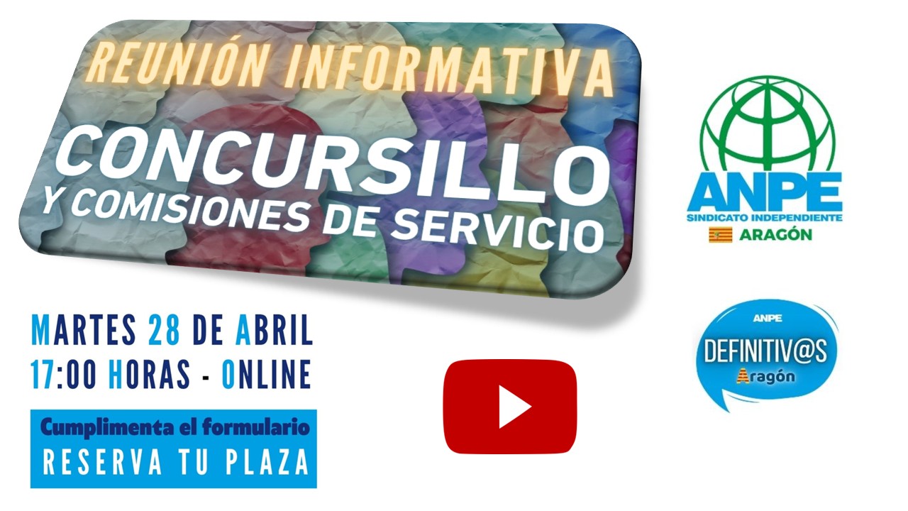 Desde ANPE queremos ayudar a poner un poco de orden en la amalgama de información que se va a producir hasta final de curso en esta materia. Por ello, ANPE os invita a una reunión informativa online, el próximo martes 28 de abril, a las 17:00 horas, gratuita y abierta a cuantos estéis interesad@s.