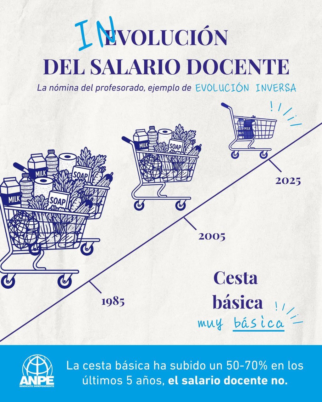 En definitiva, mientras los precios no dejan de crecer, los docentes llevamos quince años perdiendo poder adquisitivo. Somos la clase media que enseña y que sostiene la educación pública y, sin embargo, cada año vivimos peor. ANPE exige respeto: salarios dignos, actualización fiscal y recuperación real del poder adquisitivo. En términos concretos: