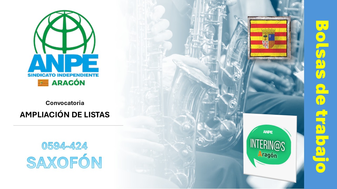 El Departamento de Educación, Cultura y Deporte del Gobierno de Aragón ha convocado un procedimiento de ampliación de listas de espera para la especialidad de Saxofón (0594-424) del Cuerpo de Profesores de Música y Artes Escénicas. Las solicitudes podrán presentarse del 5 al 19 de noviembre de 2025 a través de la plataforma PADDOC.